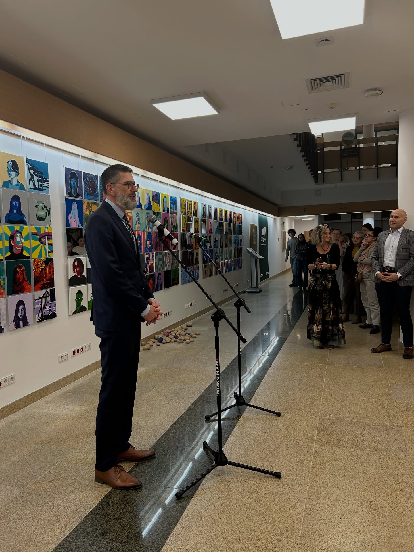 Wernisaż wystawy „SELFIE SGGW” miał nie tylko wymiar artystyczny, ale również wyraźnie integracyjny i wspólnotowy. Tego wieczoru hol Biblioteki Głównej SGGW stał się przestrzenią spotkania studentów, wykładowców, władz Uczelni oraz gości, a przede wszystkim — autorów prezentowanych prac, którzy z ogromną radością i dumą opowiadali o swoich realizacjach.
